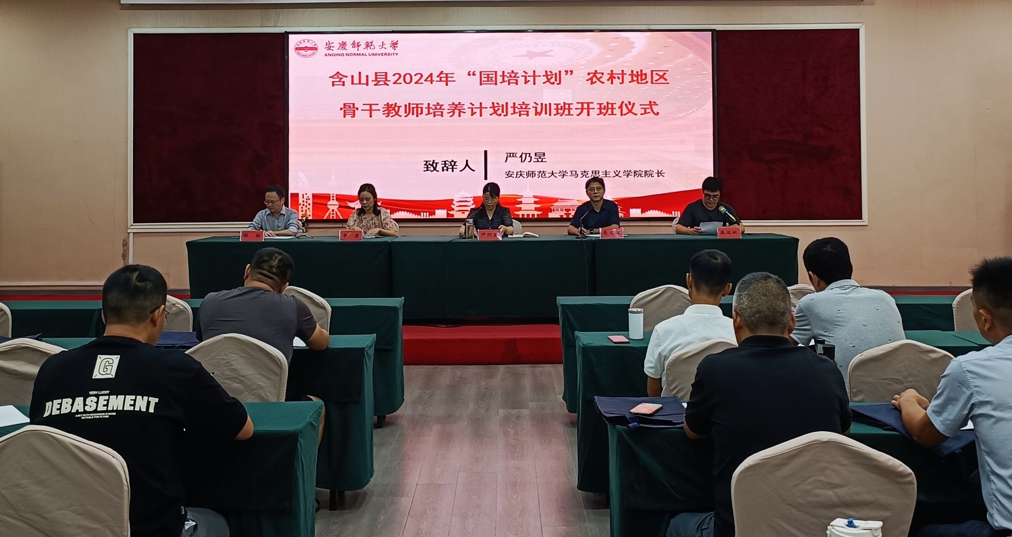 9月7日下午,在安庆大酒店举办了集中研修阶段开班仪式,公司经理严仍昱、继续教育公司副经理吴义江、含山县教师进修公司继续教育办公室相关人员、项目负责人及全体学员参加了此次活动。开班式上,严仍昱强调,“国培计划”是教育工作者提升自我、精进业务、共谋教育发展的宝贵平台,提供了系统学习、深入交流的机会,是携手并进、共同推动乡村教育振兴的重要途径。吴义江对远道而来的参训教师表达了诚挚的欢迎,向与会教师介绍了安庆深厚的历史底蕴与独特文化魅力,并对本次培训班寄予厚望,期待圆满成功。随后项目负责人进行了项目实施方案解读,学员代表进行了表态发言。