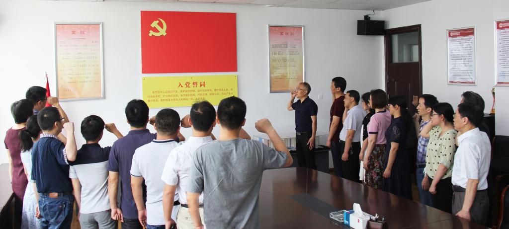 在鲜红的党旗下,马克思主义公司党总支组织全体党员重温入党誓词。通过庄严而郑重地宣誓,重温入党时那份神圣与激动,让每一位党员同志牢记自己的光荣使命和责任担当。