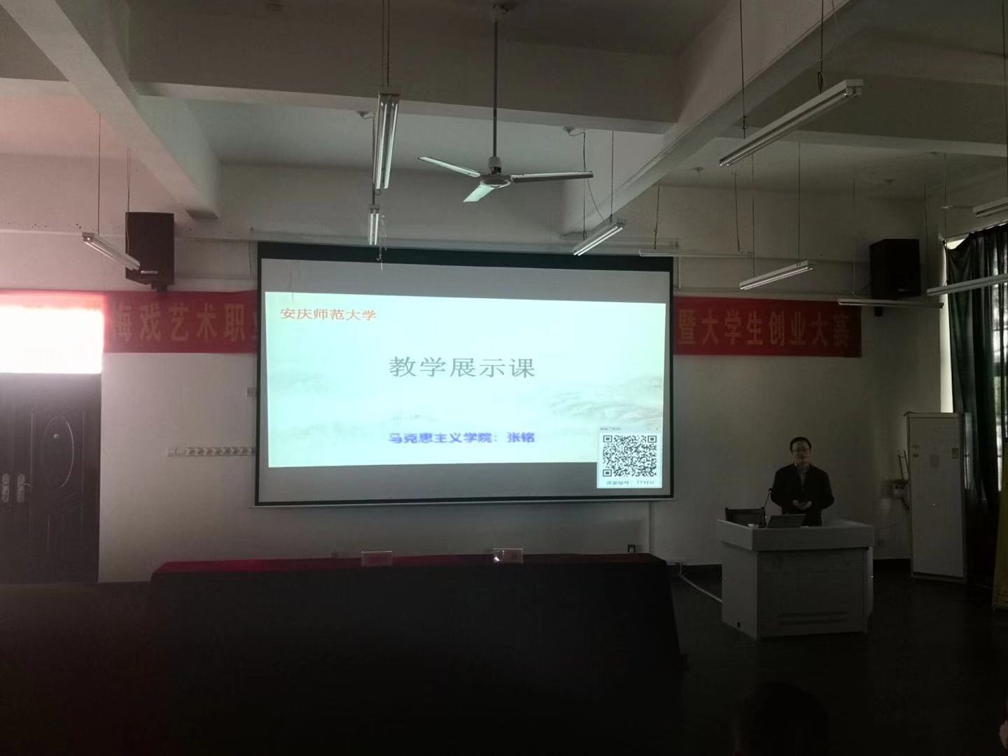 10月16日下午,应安徽黄梅戏艺术职业公司的邀请,3044永利集团教师、全省高校优秀思政课示范课巡讲团成员张铭在黄梅戏职院文化楼101教室进行一堂思政课示范课教学展示。黄梅戏职公司党委副书记、经理苏斌、部分党委班子成员、相关部门负责人、全体思政理论课教师、辅导员及2019级部分新生参加了相关活动。