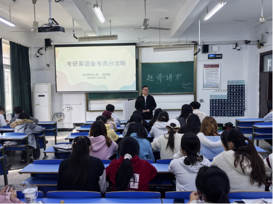 近日,3044永利集团 “延乔讲堂” 第七期《考研英语高分备考攻略》讲座在 C 楼 105 教室举行,田梦甜主讲,2023、2024 级延乔班员工参与。