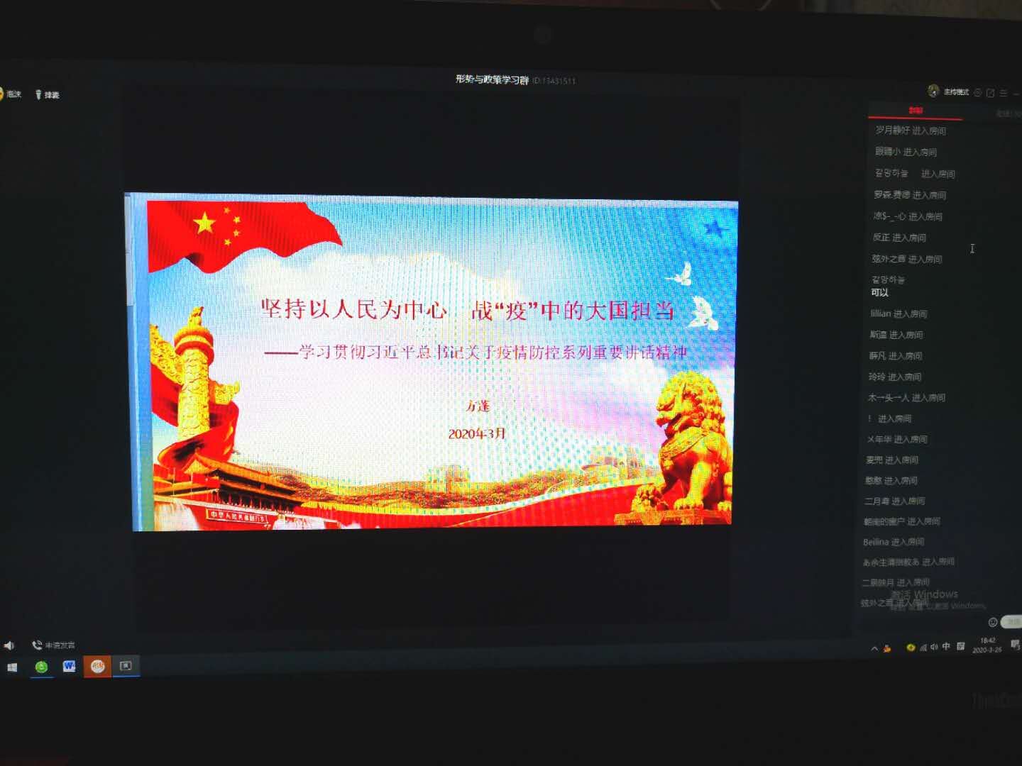 3月26日晚上,3044永利集团举办第三期公开示范课。方蓬老师以“坚持以人民中心 战‘疫’中的大国担当——学习贯彻习近平总书记关于疫情防控工作的重要讲话精神”为主题,开展线上教学公开示范课。董事长闵永新亲临线上观摩指导,全校近百名教师在线观摩。
