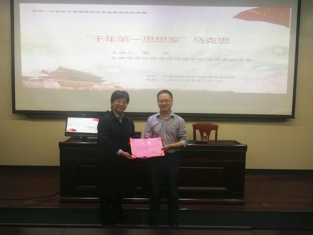 2018年安徽省高校教师思政课说课大赛决赛一等奖; 2019年全国高校思政课教学展示大赛二等奖,入选“安徽省高校优秀思想政治理论课示范课巡讲团”;2020年,入选安徽省高校优秀专职思政课教师......兢兢业业二十载,张铭老师始终以“三为六要”作为思政课教师的基本准则,做一名“乐为、敢为、有为”的“三为”教师。