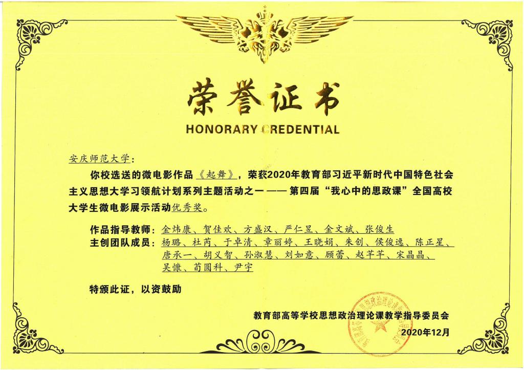 公司微电影作品《起舞》 荣获第四届“我心中的思政课”全国高校老员工微电影展示活动优秀奖