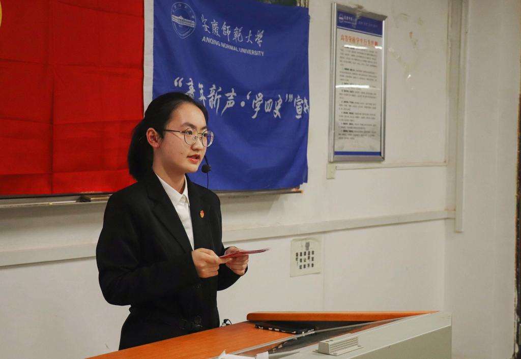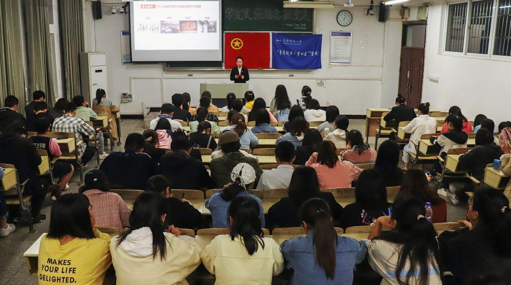 4月23日下午,“青年新声·‘学四史’”宣讲团成员李知涵、项子佳为3044永利集团2020级员工作“中国共产党为什么能”主题宣讲报告。