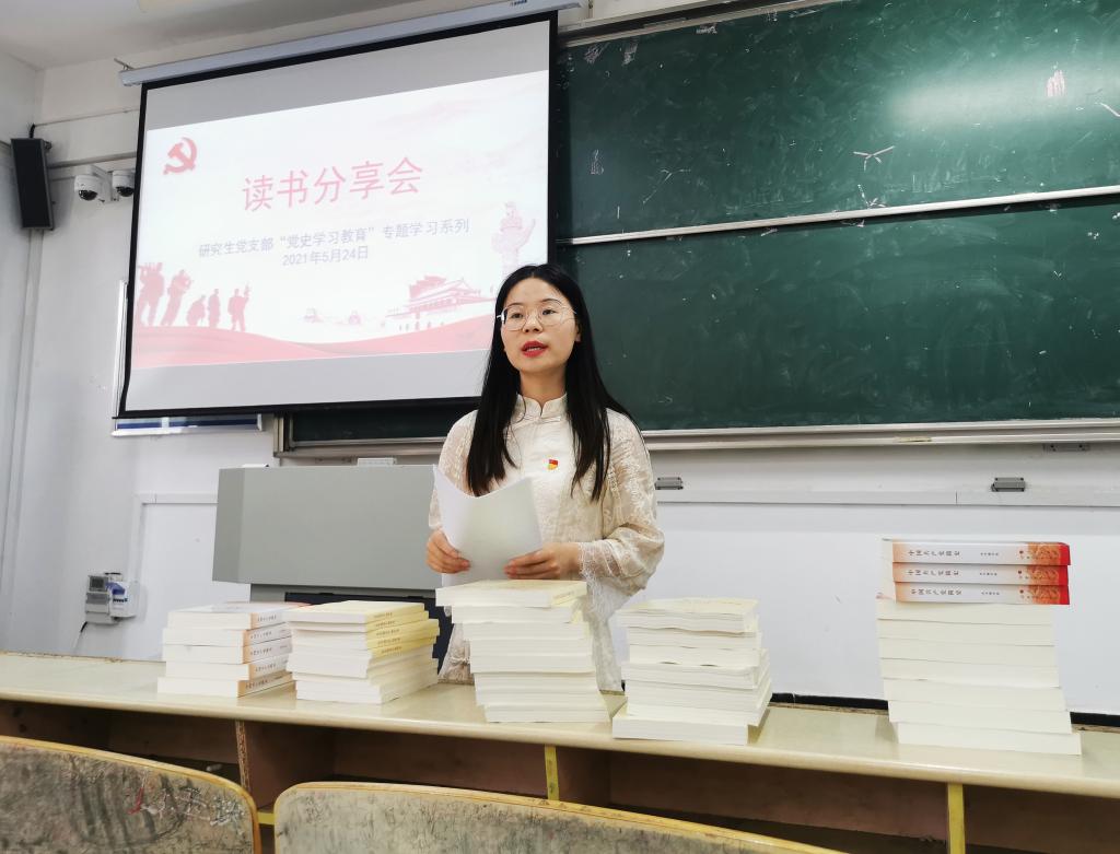 为深入贯彻习近平总书记在党史学习教育动员大会上的讲话精神,贯彻执行公司党史学习教育领导小组下发的有关文件通知,研究生党支部坚持“六学”,开展党史学习教育读书分享会。