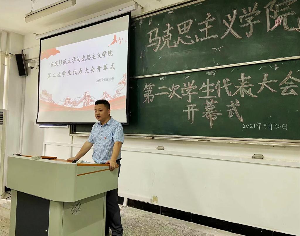 大会在庄严的国歌声中拉开序幕。邹斌在会上发表讲话,对大会的顺利召开表示热烈的祝贺,从 “定位”“担当”“奋斗”与“道德”四个关键词入手,对员工组织工作人员提出“四个希望”,强调“同学们应正确定位自我身份意识,坚持用马克思主义观点看待问题,同时保持砥砺前行,开拓进取的奋斗姿态,成为主动彰显青春底色与亮色的青年马克思主义者。”