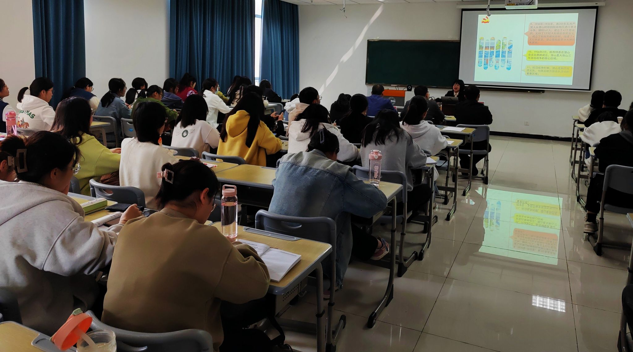 黄胜红介绍了“红源潜山”的背景、内涵,并从星星之火、红旗漫卷、中流砥柱、胜利旗帜四个篇章展开,生动详细地讲述了潜山共产党组织的创立及在大革命时期、土地革命战争时期、全民族抗战时期、解放战争时期的光辉历史。黄胜红寄语青年员工要有“愚公移山”的志气、“明知山有虎、偏向虎山行”的勇气、“敢为天下先”的锐气,在建设社会主义现代化强国的伟大征程中奉献青春、增长才干。