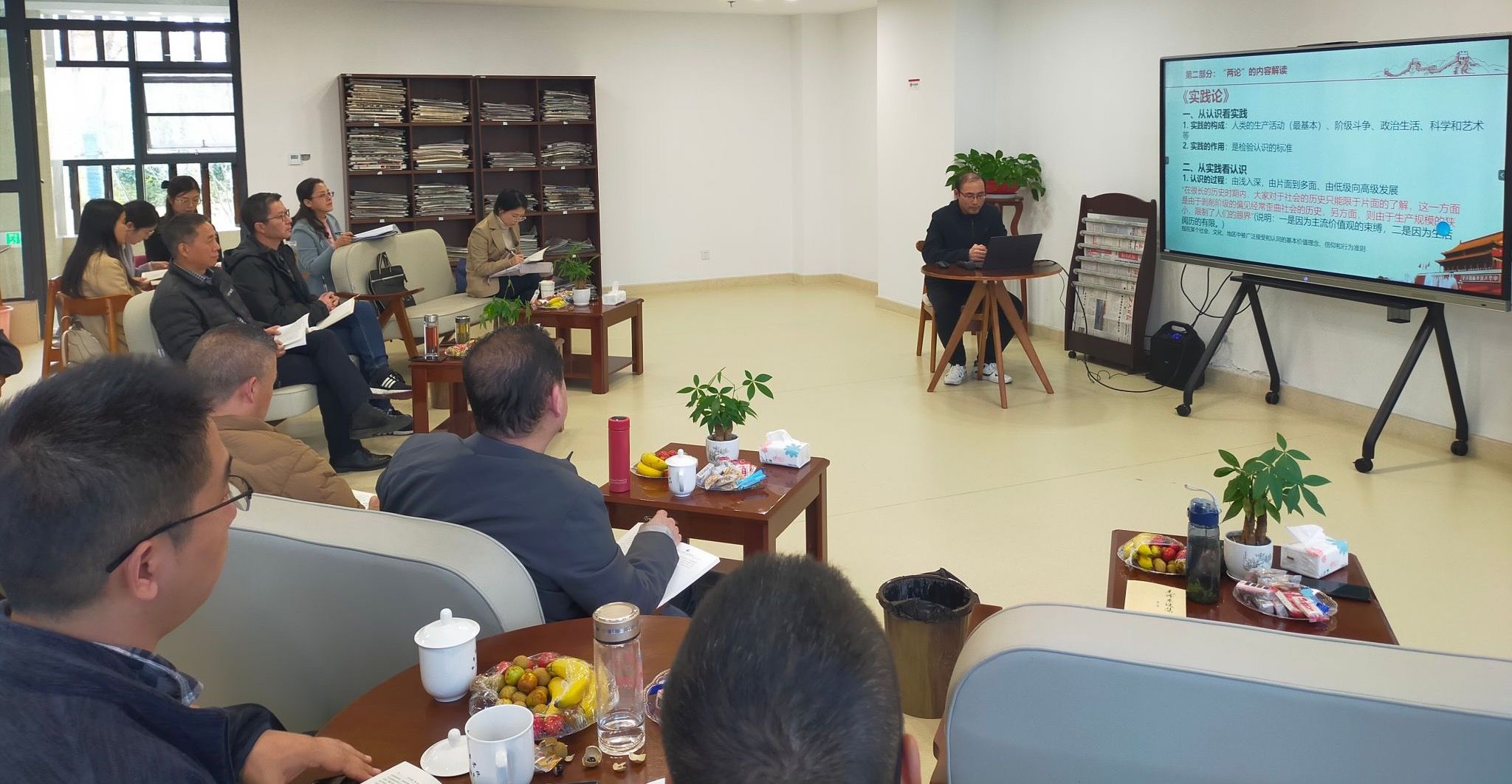 读书会上,公司青年教师汪金玉博士以“马克思主义哲学中国化奠基之作”为题,从创作背景、内容解读和当代价值等三个方面,对毛泽东的《实践论》和《矛盾论》进行了详细的介绍和深入浅出的讲解。在互动环节,青年教师围绕学习毛泽东这两篇经典哲学著作交流了心得体会。