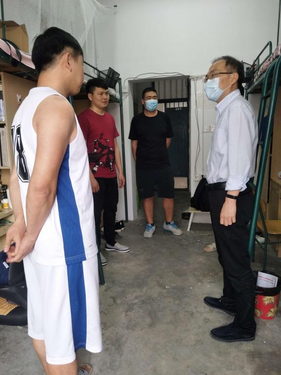 为深入了解公司第一批返校员工的思想和生活状况,帮助员工尽快适应返校生活,5月13日下午,公司党总支书记金文斌和辅导员分别走访了研究生和本科毕业生宿舍,并到员工食堂慰问了公司员工志愿者。