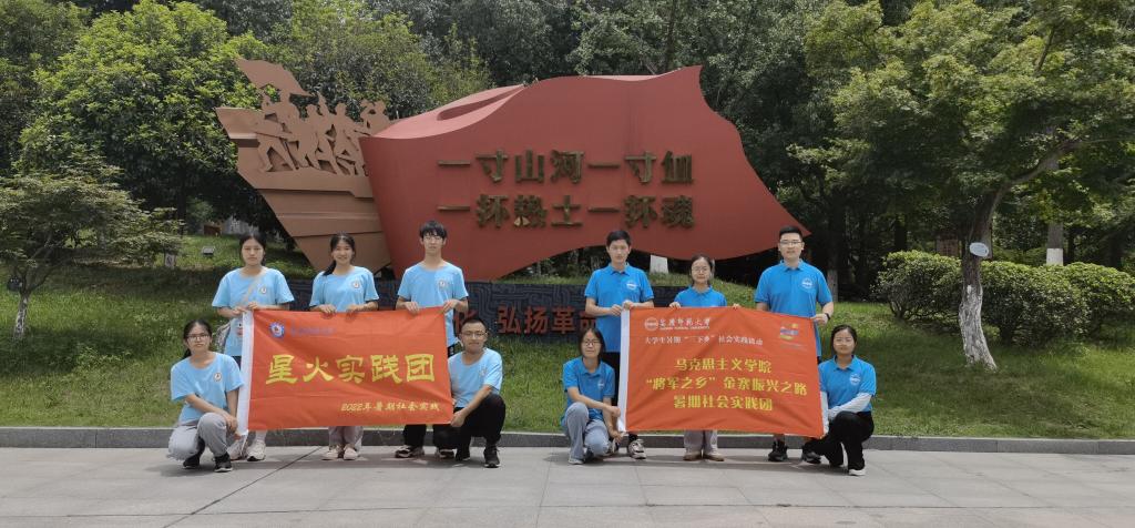 缅怀革命先烈、继承先辈遗志、传承红色基因。实践团按照预先准备的路线,分别参观了金寨县红军纪念堂、红军烈士纪念塔、烈士陵园等主要蕴含红色精神的建筑。在实践过程中,实践团与安徽财经大学“星火”实践团于金寨县革命博物馆前不期而遇,两队相互交流了本次实践的主题及意义。