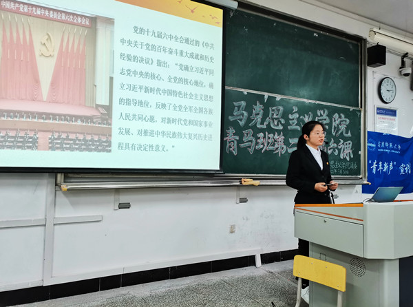 六名宣讲团成员带领青马班学员从“一个主题”“两个确立”“三大历史性飞跃”“四个伟大成就”“五大历史意义”“十条历史经验” 多角度阐述了党的十九届六中全会精神,并号召大家在新时代贡献自己的青春力量。