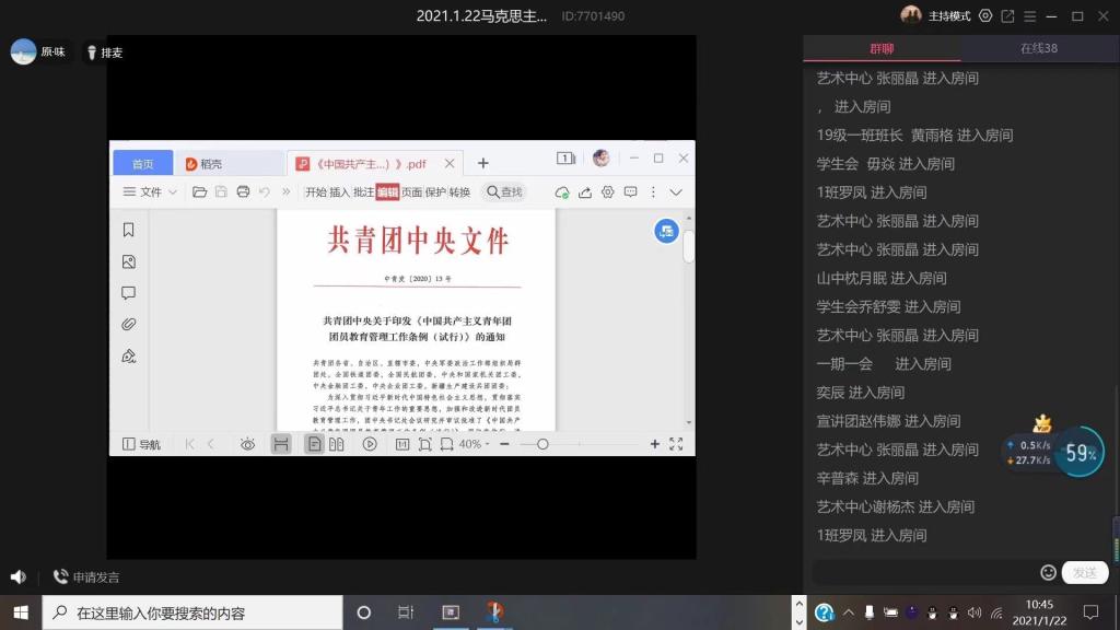 2021年1月22日,公司团委召开线上学习会议。公司团委副书记贺佳欢组织员工集中学习《中国共产主义青年团团员教育管理工作条例(试行)》,并对下学期的工作进行部署,提出要求。