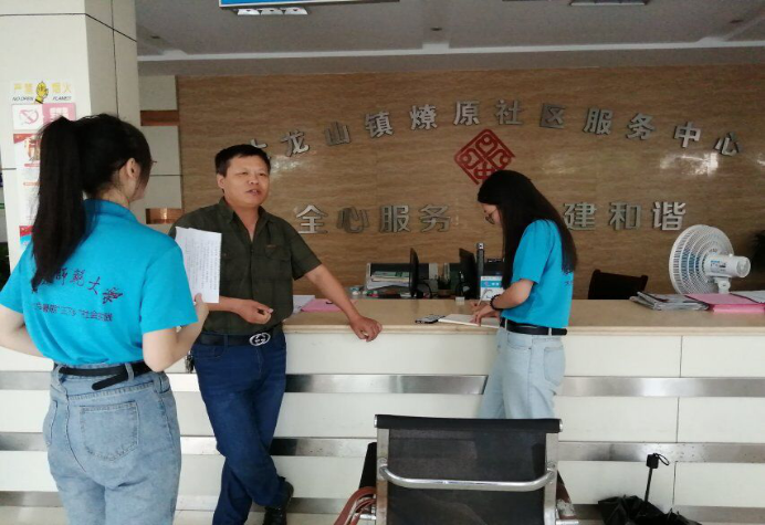 队员们在燎原社区一路走访调查,对居民们进行了关于乡村环境保护情况的问卷调查以及相关问题的访谈。环保问卷问题设计主要涉及居民平时生活中遇到的一些环保问题,问卷调查对象涉及各个年龄段和不同社会身份的社区居民。在问卷调查中,居民们都给予了大力支持,对社区环境整治工作给出了个人合理意见。