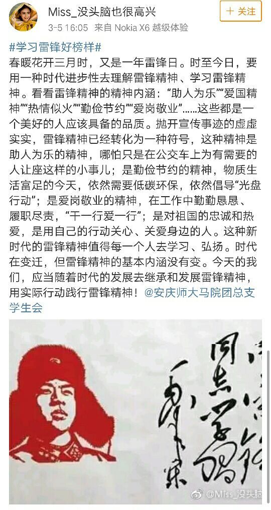 公司通过微信公众号--安庆师大3044永利集团团总支员工会,推送“向雷锋同志学习”、“学习雷锋好榜样”、“重温雷锋故事”三个特辑,分享雷锋同志及其他以实际行动践行雷锋精神的典型人物的先进事迹。有为报效国家与社会将毕生积蓄捐给华南农业大学的卢永根夫妇,有为救他人而壮烈牺牲、忠肝义胆的消防救援人员杨科璋、有始终树立“四个意识”,坚决贯彻党中央决策部署、率领全县党员干部撸起袖子加油干的因公殉职的人民好公仆廖俊波……这些先进事迹深深地感动着同学们的心灵,激发了同学们学习雷锋精神的热情,提升了同学们的思想觉悟。