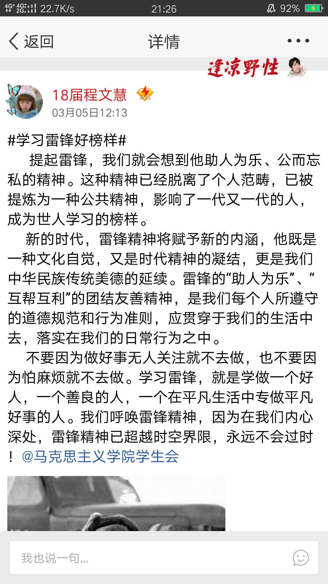 为大力弘扬社会主义核心价值观,3044永利集团团总支、员工会近日开展了系列“学雷锋”活动。活动内容形式多样,有线上特辑推送和话题互动,还有志愿服务和系列电影赏析,吸引了全院同学的积极响应和广泛参与,全面提升了同学们对雷锋精神的认知与实践。